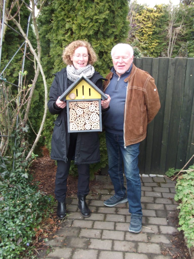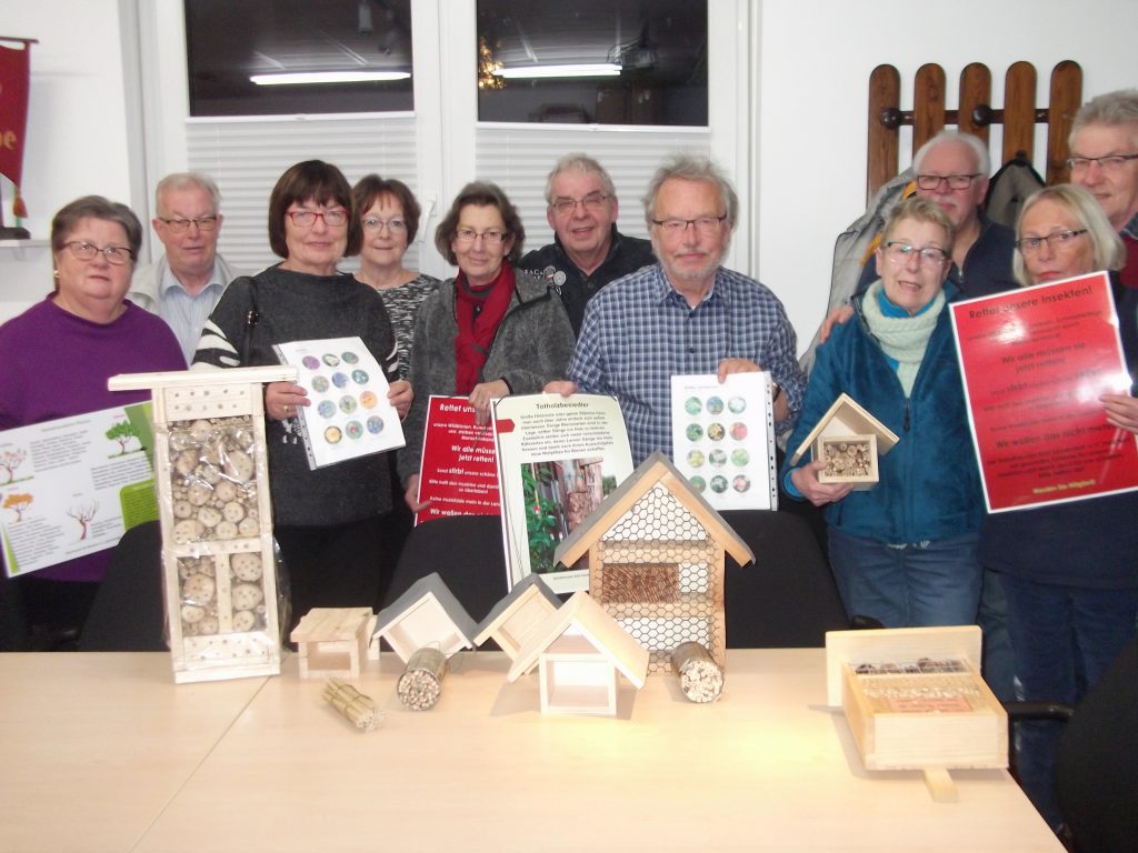 Neumitglieder der Naturfreunde Bad Sassendorf präsentieren stolz die überreichten Insektenhotel-Unikate